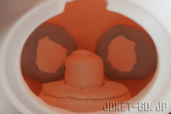 ジョイント部の白いパテは既に硬化して簡単には外れなくなっています。目を固定しているグレーなパテは硬化しないものの様です。